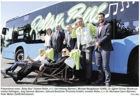 Ab Montag, 13. Juni 2016, sind im Liniennetz der Göttinger Verkehrsbetriebe (GöVB) zwei so genannte „Relax Busse“ unterwegs. In diesen Bussen wird Entspannungsmusik zu hören sein. Ziel ist es, dass sich sowohl der Fahrer als auch die Fahrgäste mithilfe der Musik entspannen können. Der Blutdruck der Busfahrer wird überwacht; die Busse fahren auf stark frequentierten Strecken.