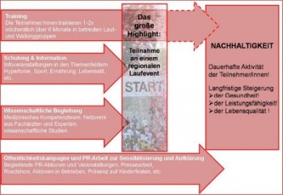 Kerninhalt des Hochdruck Programm Deutschland soll es sein, von Bluthochdruck betroffene Menschen nachhaltig für sportliche Aktivitäten zu begeistern, um so aktiv den Blutdruck zu regulieren und damit die Gesundheitswerte zu verbessern.